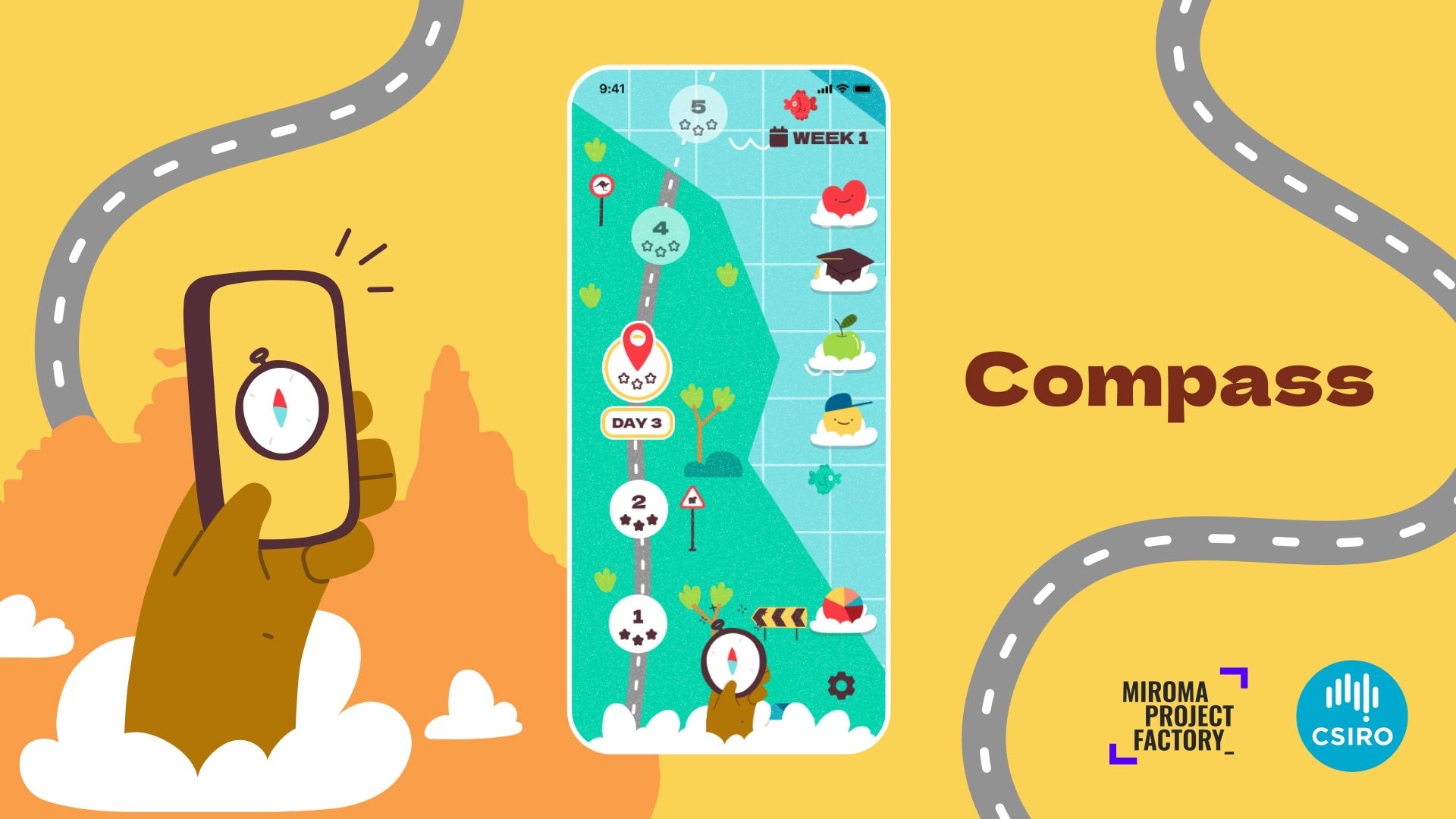 The Compass app was created through an extensive co-design process with a group of target users. They wanted this to be game-like, but not a game; to be strongly based on Australian iconography; to build in information and learning as a key deliverable and to be engaging, accessible, trustworthy. They wanted to see their progress as a ‘journey’ and be given challenges to show their resilience - all with the aim of increasing their knowledge as a foundation to changing their behaviour.