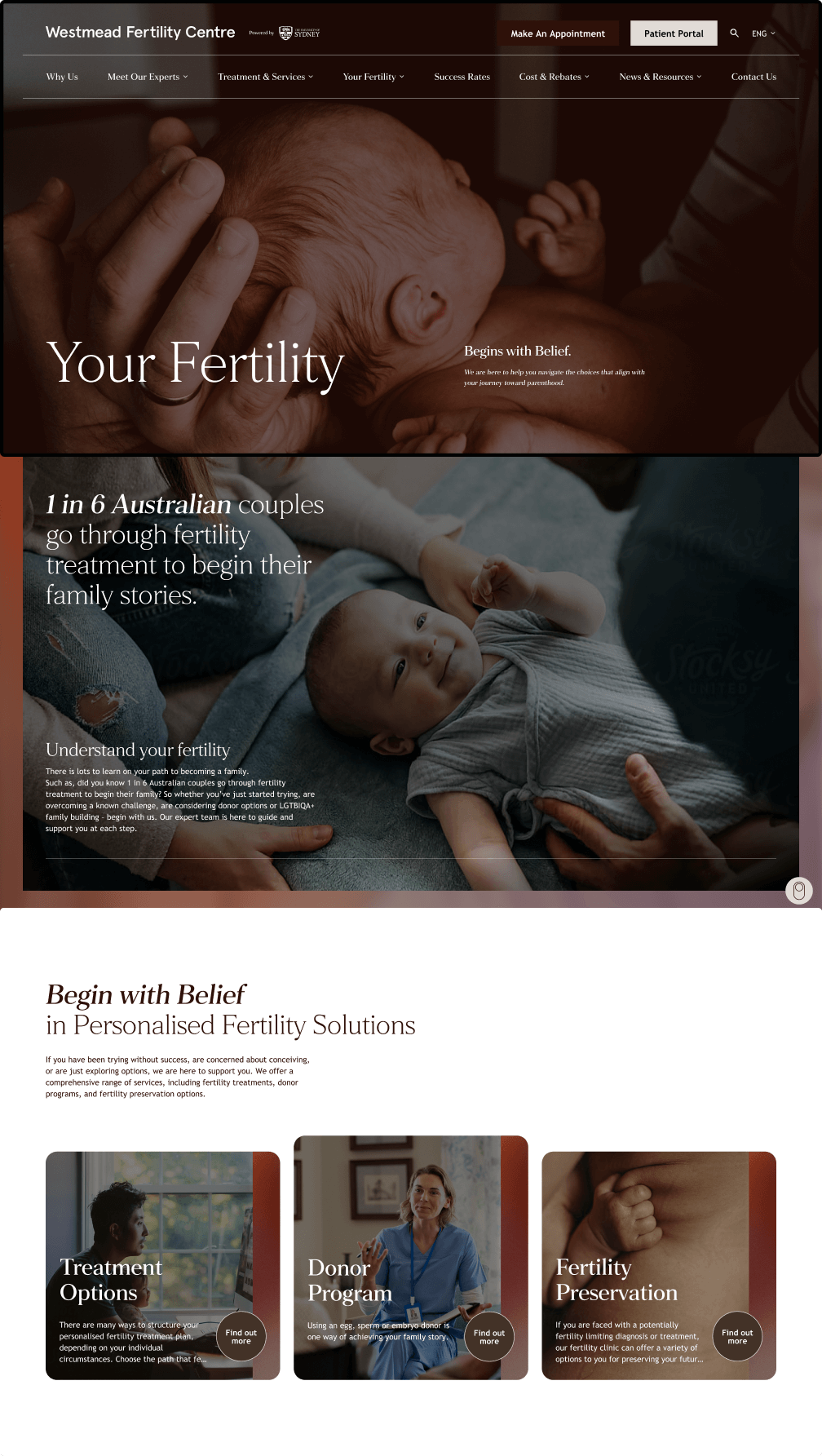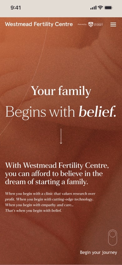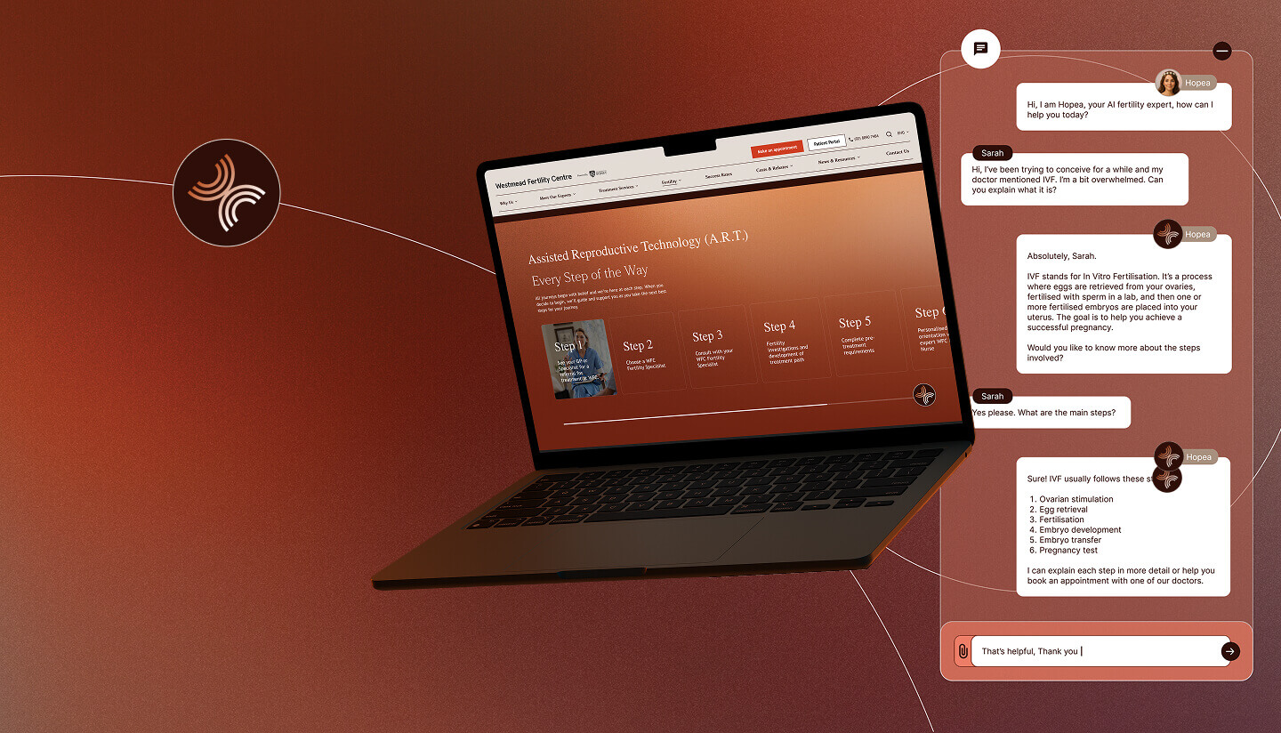 Structure was only the beginning. We translated Westmead Fertility Centre’s essence into a living, digital expression. Every touchpoint, from booking appointments online to receiving AI-powered support in treatment, reflects the same warmth, clarity and belief-led identity. This was the moment the experience shifted from functional to felt.