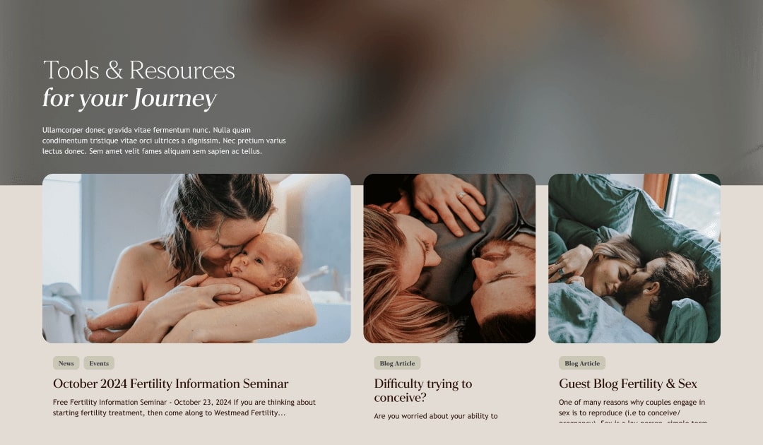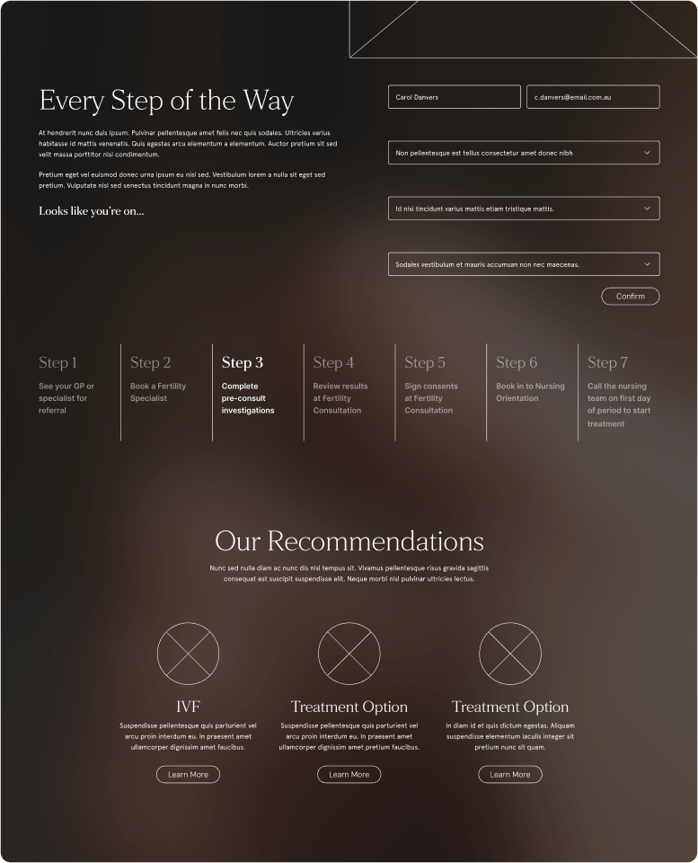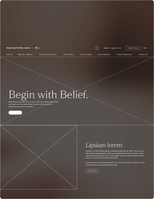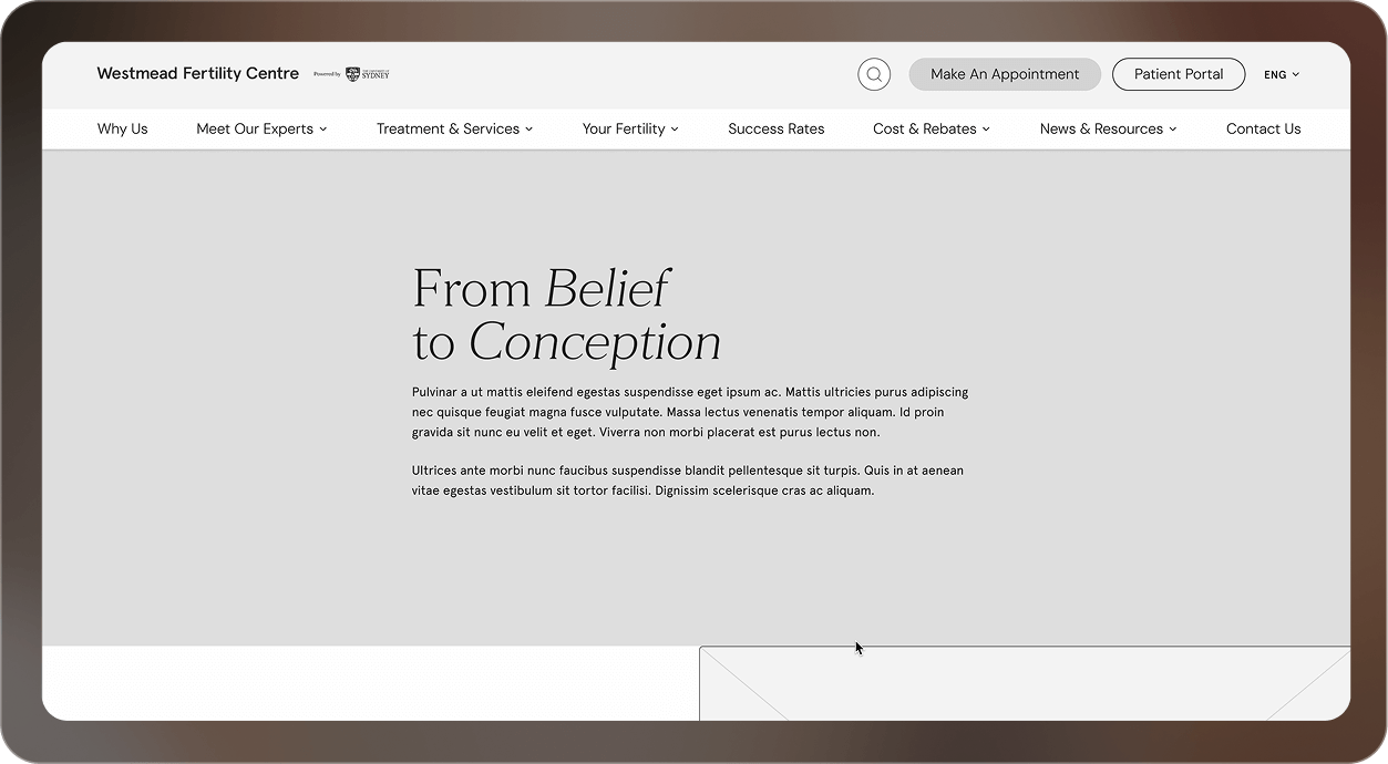 This skeletal structure gave Westmead Fertility Centre and our team a shared view of how users would move through the site ensuring the final experience would feel intuitive, supportive and aligned with real patient needs.
